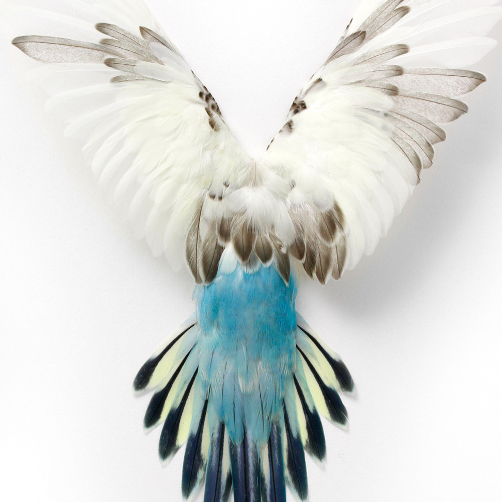 Framed 14 x 18 Shell Parakeet Bird (White, yellow, blue) 2