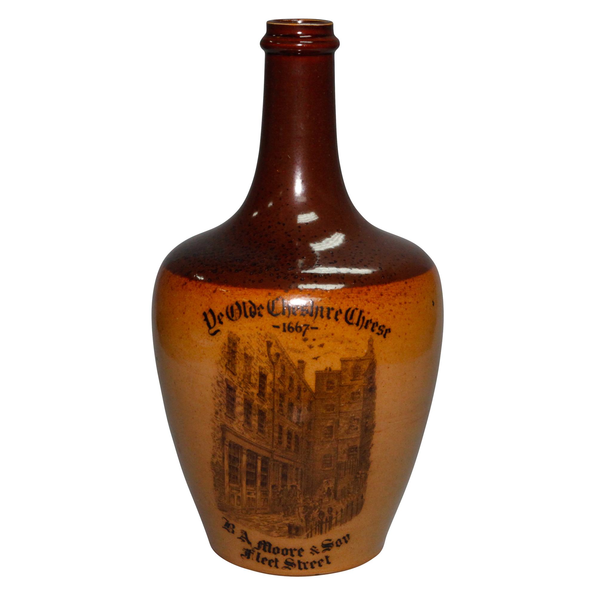 Doulton Lambeth produced souvenir bottles for the famous Ye Olde Cheshire Cheese tavern in London.